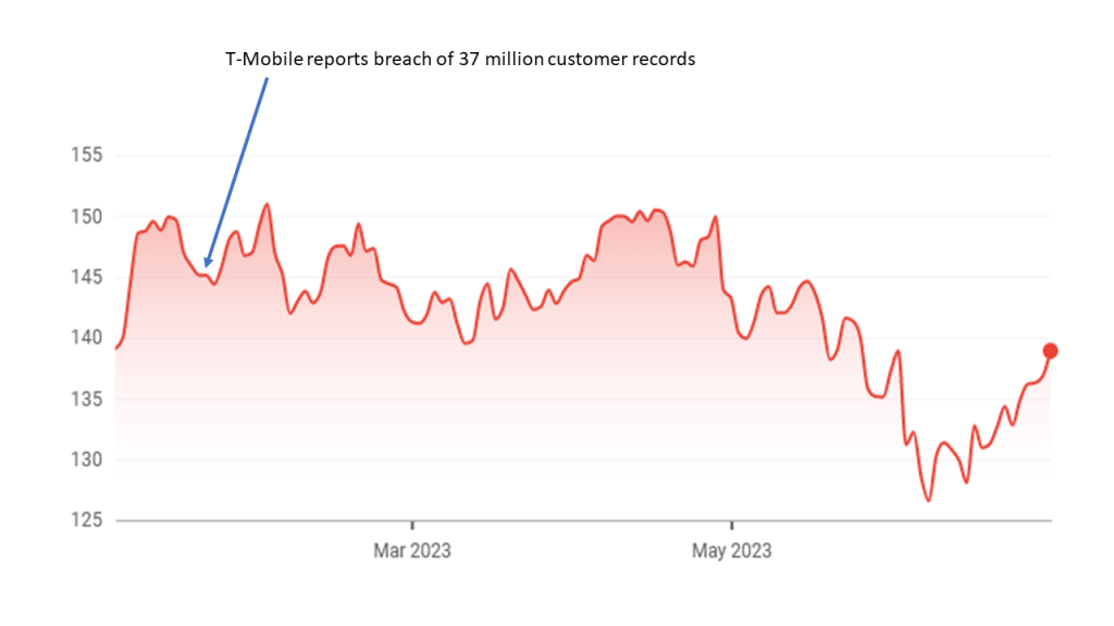 Now $500M is a lot of money even for a company as big as T-Mobile. Despite their costs, security breaches are often ‘one-time hits’ to a company’s expenses. And that is important for CISOs to understand. But don’t security breaches cause extreme damage to a company’s reputation and stock price? Don’t customers leave? Let’s take a look at T-Mobile’s stock price after its latest big breach was reported in January 2023. True, its stock dropped by one percent on the day of the announcement, but it quickly recovered just a few days later. and it has the highest subscriber growth of all wireless carriers.