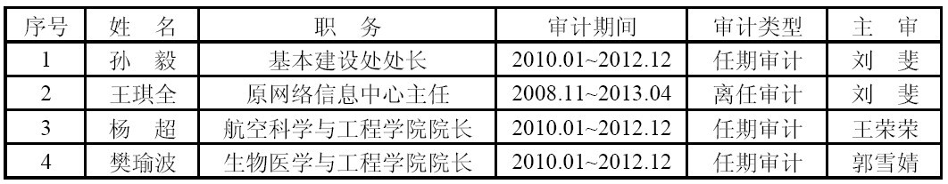 受学校组织部委托,我处今年将对以下4位处级领导干部进行经济责任审计。现予以公示。