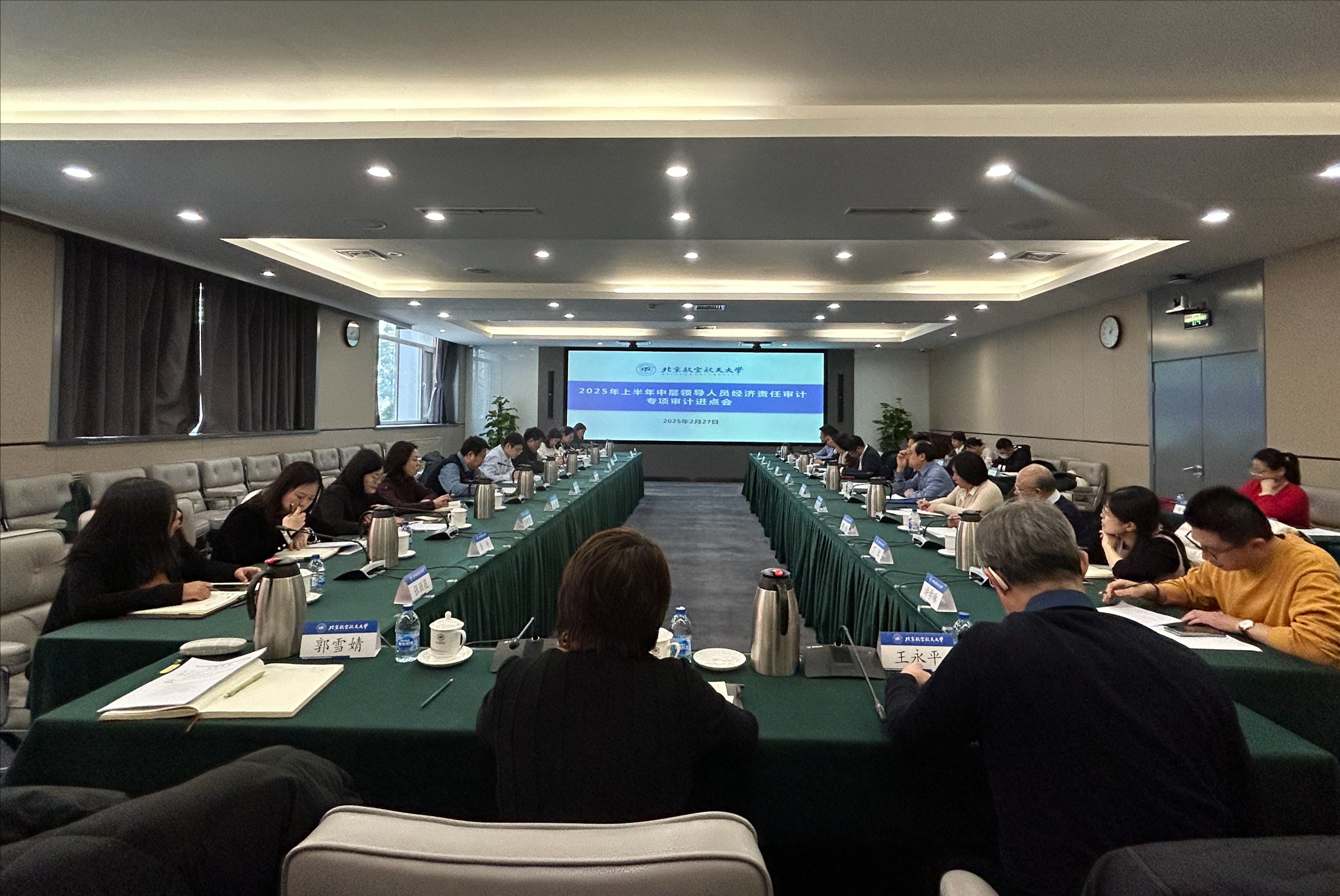 2月27日,学校2025年上半年中层领导人员经济责任审计和专项审计进点会在学院路校区如心中报告厅召开。吴江浩副校长,党委组织部、计划财务部、资产与实验室管理处、审计处负责人,被审计领导人员、被审计单位负责人及相关人员,审计组相关人员参加了会议。会议由审计处处长李广超主持。会...